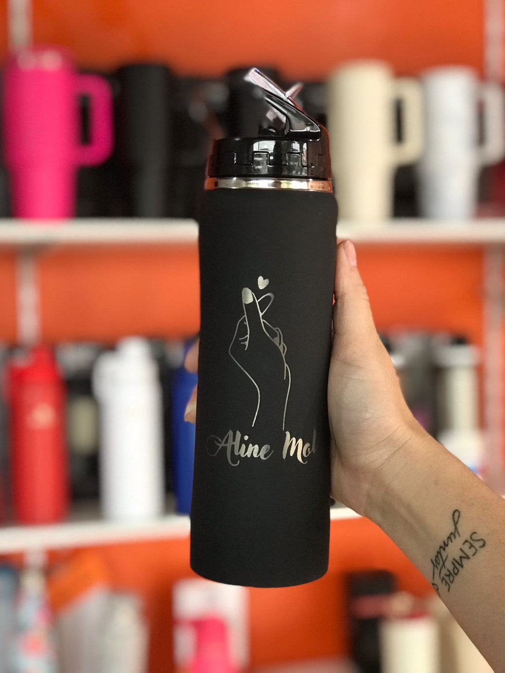 Perfeita para quem busca praticidade, leveza e exclusividade no dia a dia. Resistente e sustentável, acompanha tampa plástica com bico de canudo e chaveiro mosquetão, sendo ideal para treinos, caminhadas, academia, escola ou como brinde corporativo criativo.